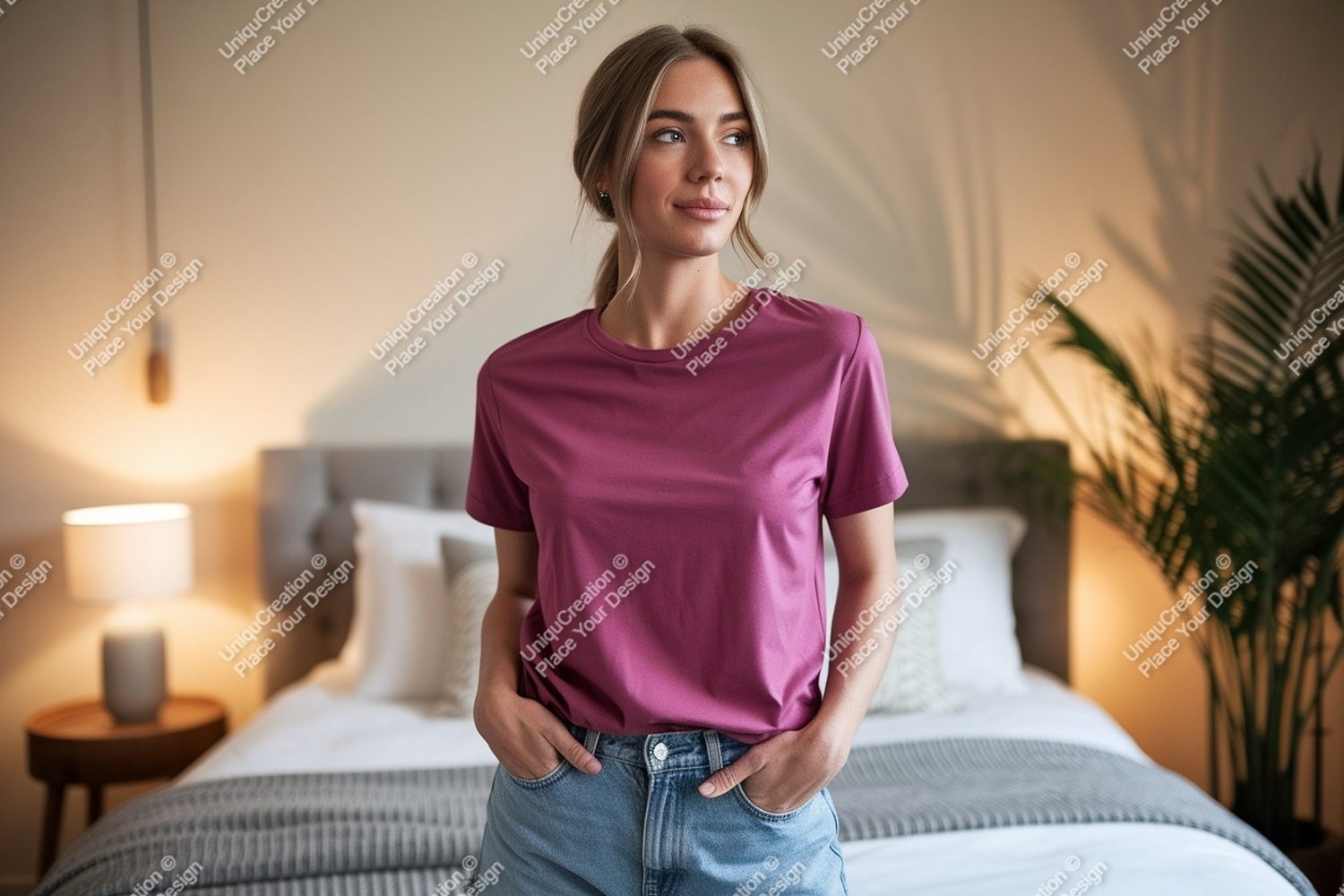 Fashion Shirt Casual Mockup Woman Magenta Denim T Bedroom Shorts