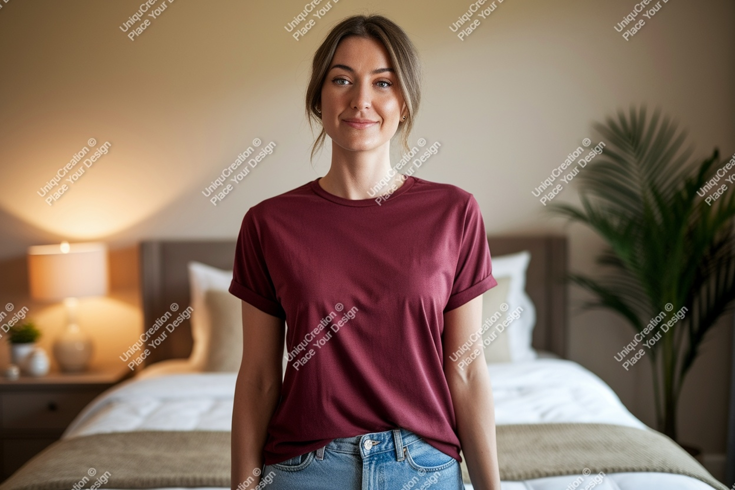 Fashion Shirt Casual Mockup Woman Jeans T Indoor Maroon Bedroom