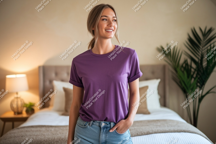 Fashion Shirt Casual Mockup Woman Purple Jeans T Indoor Bedroom