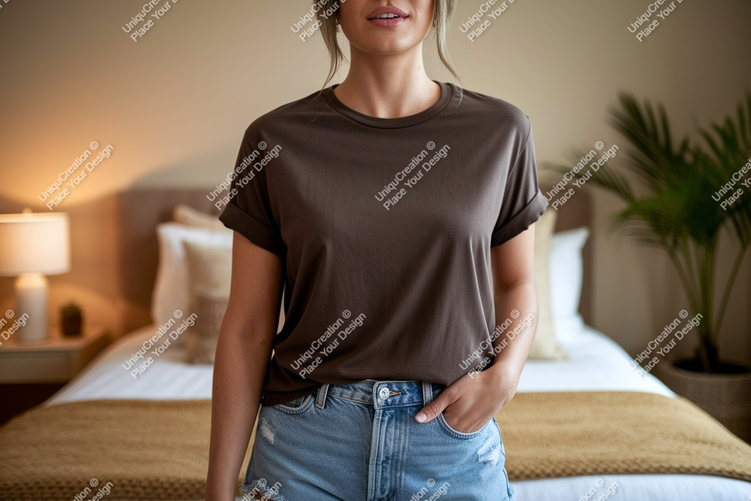 Fashion Shirt Casual Mockup Woman Brown Denim T Bedroom Shorts