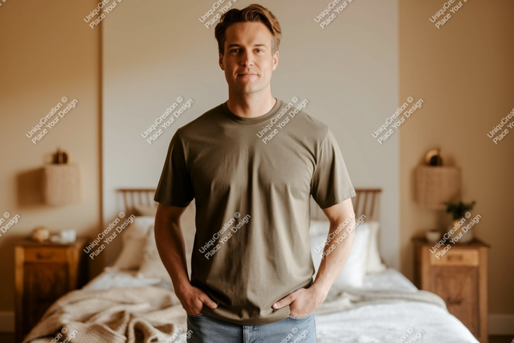 Fashion Man Shirt Clothing Casual Green Mockup Apparel Olive T