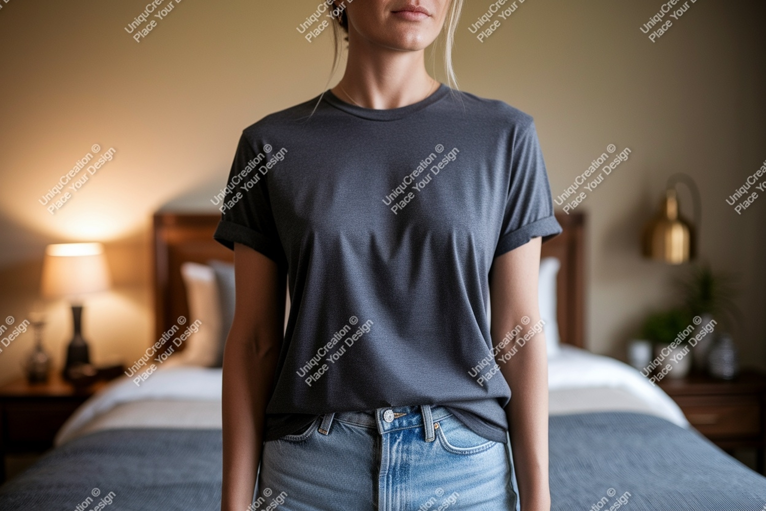 Fashion Shirt Clothing Casual Mockup Apparel Dark Jeans Gray T