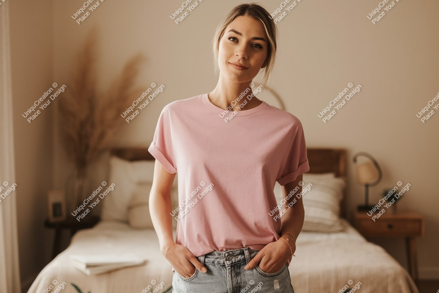 Fashion Shirt Pink Clothing Casual Mockup Woman Jeans Denim T