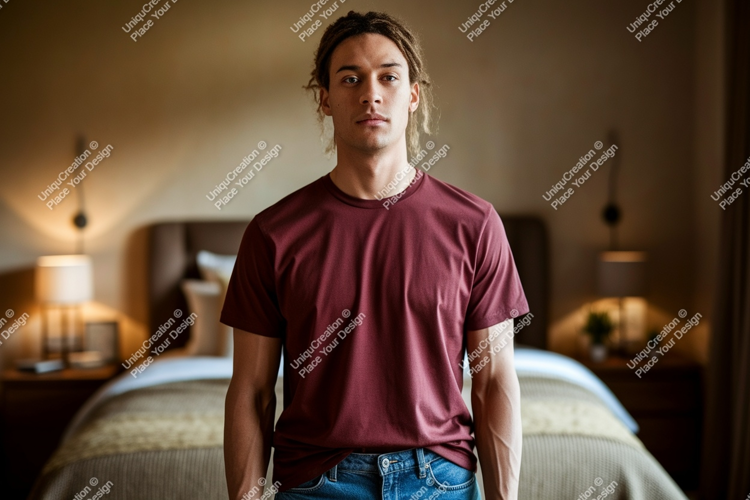 Man Shirt Casual Jeans Bed Lamp T Indoor Maroon Bedroom