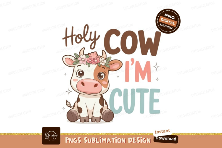 Similar Design Products to Adorable cow with flowers saying im cute calf animal