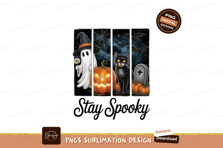 Ghost cat pumpkin bats tombstone halloween example image 1
