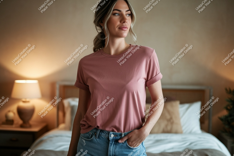 Shirt Pink Casual Mockup Woman Jeans Denim Lamp T Bedroom