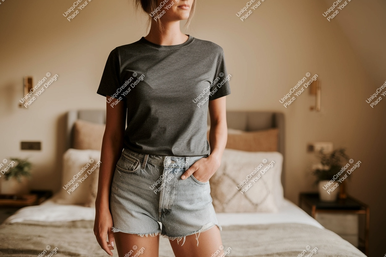 Man Shirt Casual Mockup Grey T Confident Relaxed Bedroom Indoors