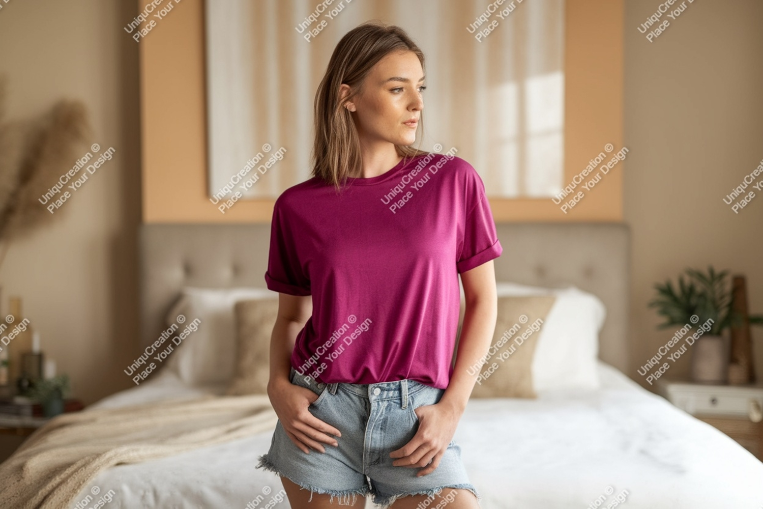 Fashion Shirt Casual Mockup Woman Magenta Denim T Bedroom Shorts