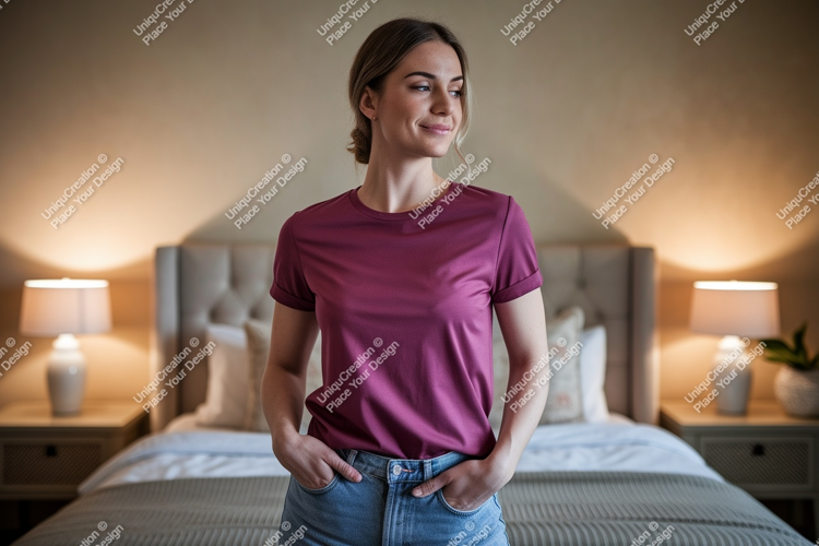 Similar Design Products to Woman wearing maroon t shirt and denim jeans image