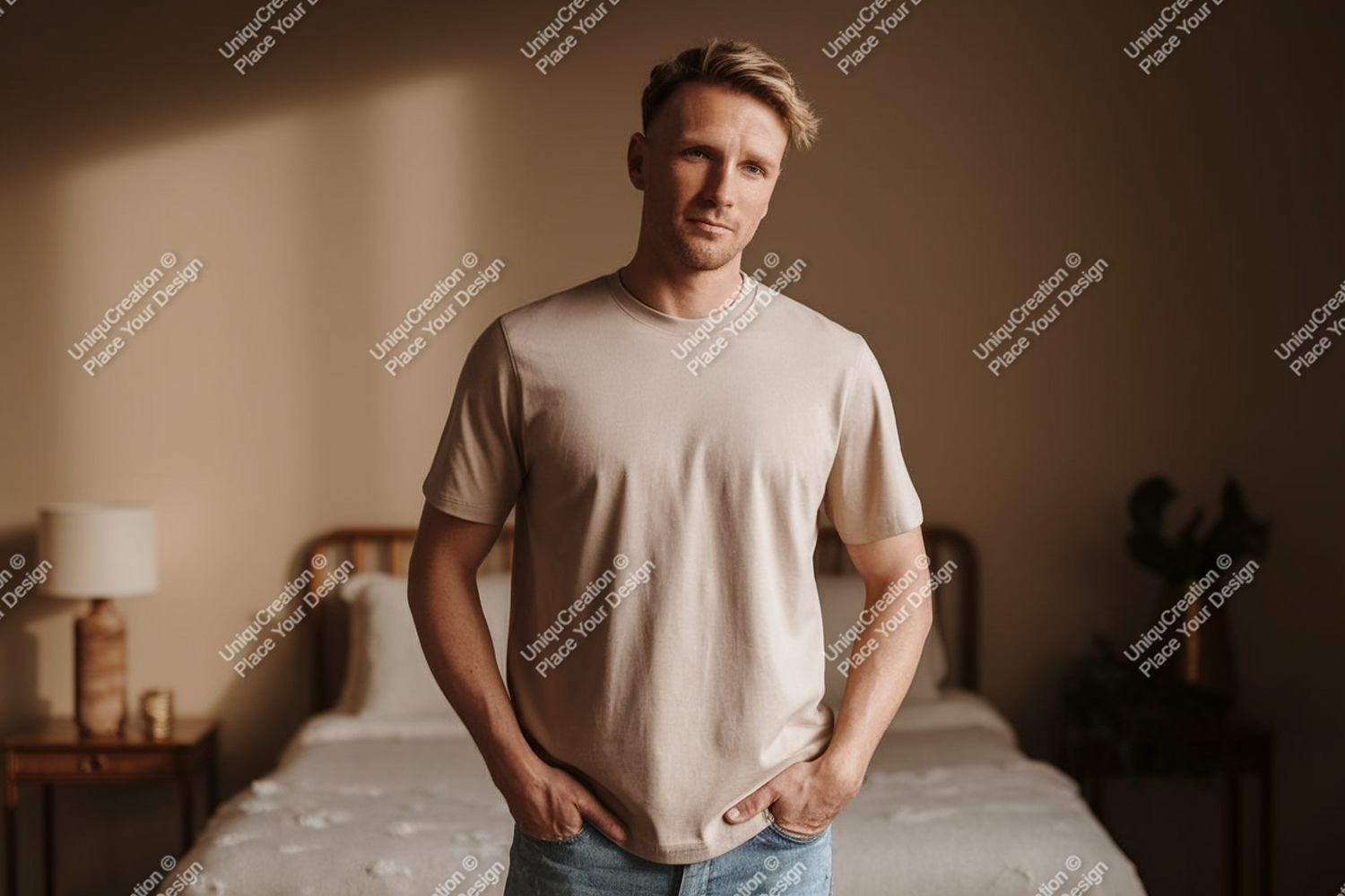 Fashion Man T-shirt Clothing Casual Adult Mockup Studio Male Portrait