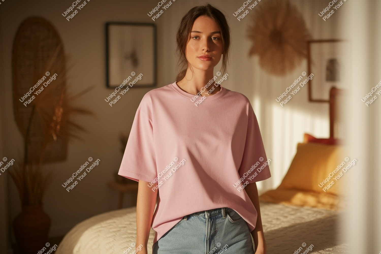 Fashion Shirt Pink Clothing Casual Mockup Apparel Woman Jeans T