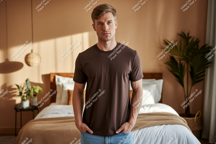 Modern Stylish Man T-shirt Clothing Casual Mockup Apparel Brown Comfortable