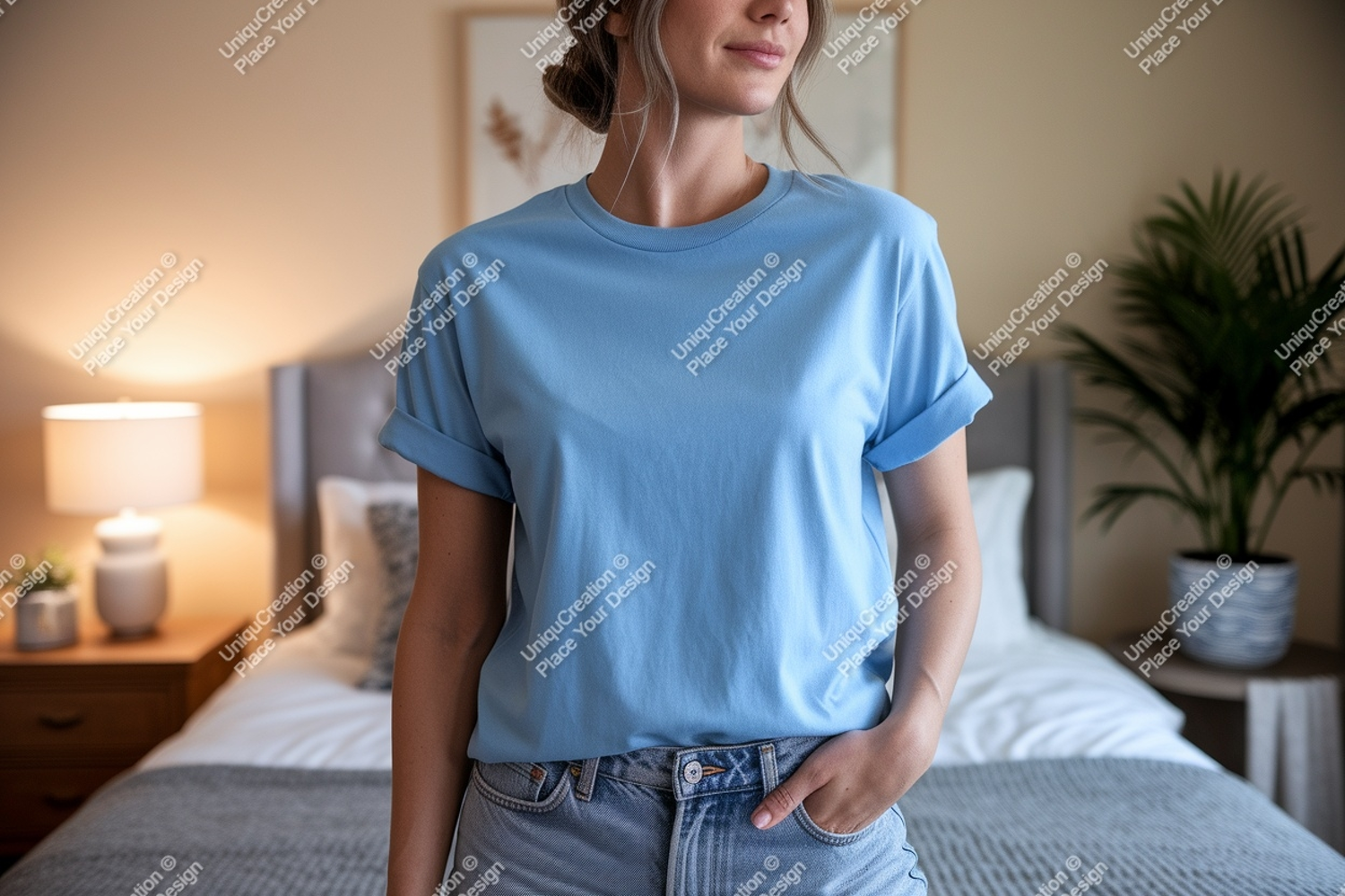 Fashion T-shirt Clothing Casual Mockup Apparel Model Blue Person Female