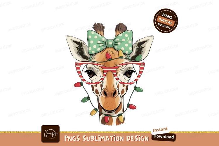 Festive giraffe wearing glasses and Christmas lights example image 1