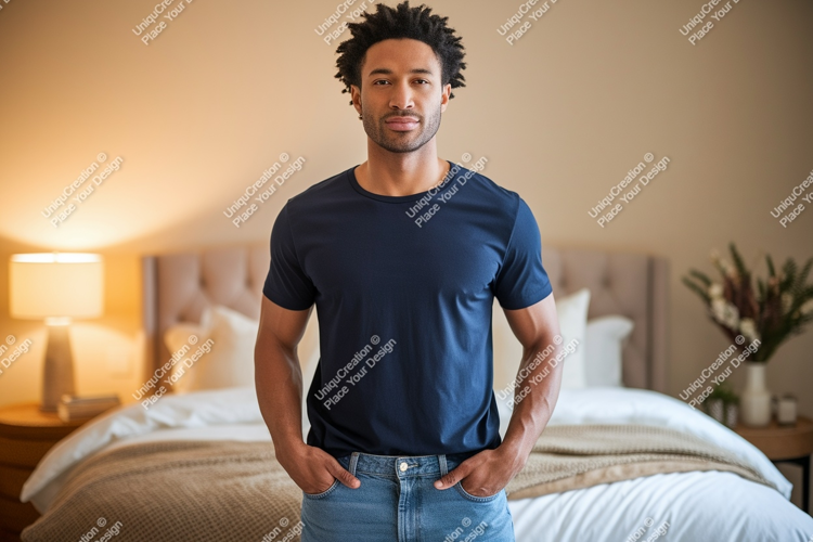 Man Shirt Casual Mockup Blue Jeans Standing T Confident Bedroom