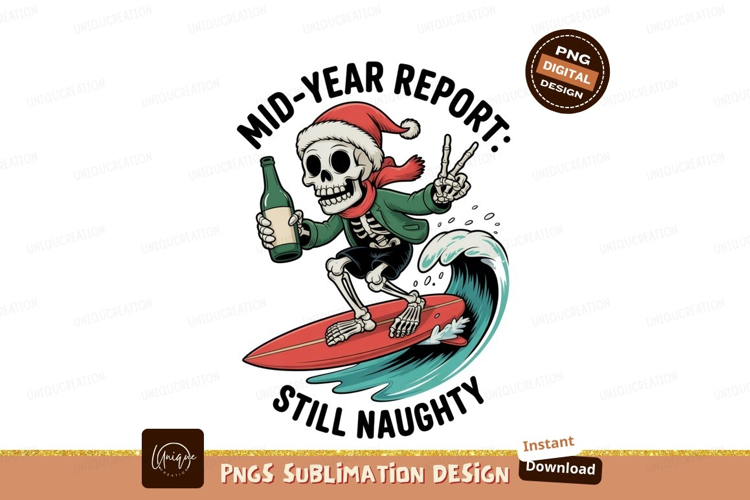 Similar Design Products to Skeleton surfing with santa hat and drink image