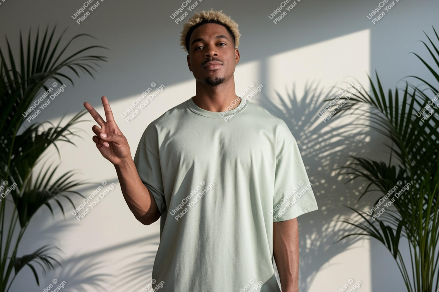 Shadow Man Sign T-shirt Casual Green Mockup Peace Plant Indoor