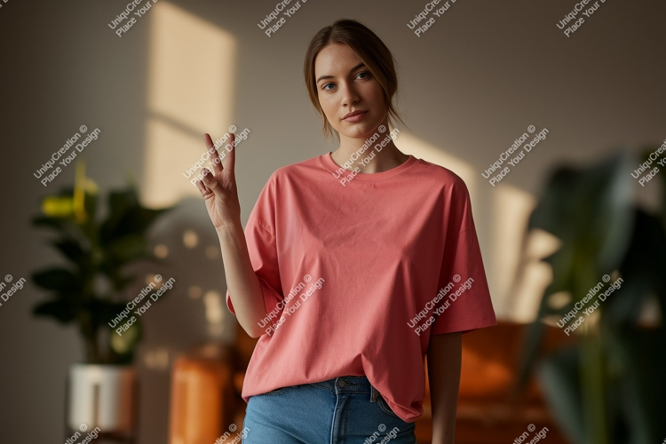 Fashion Shirt Sign Pink Casual Mockup Woman Peace Jeans Indoor