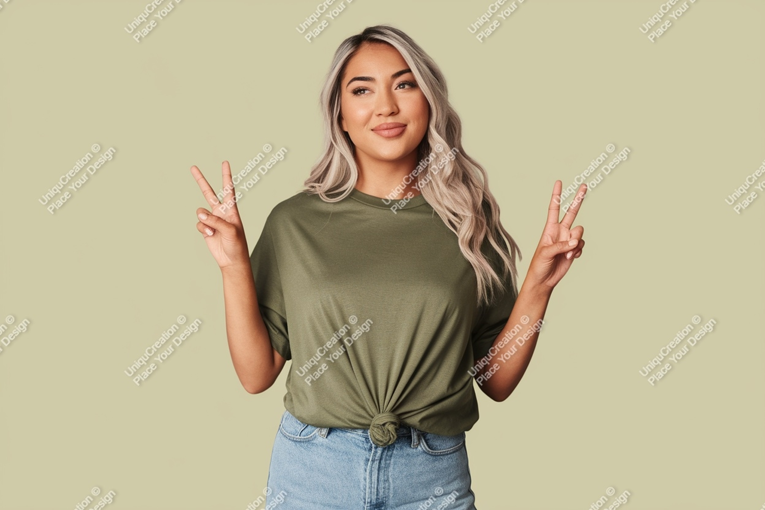 Similar Design Products to Woman peace gesture olive shirt denim image