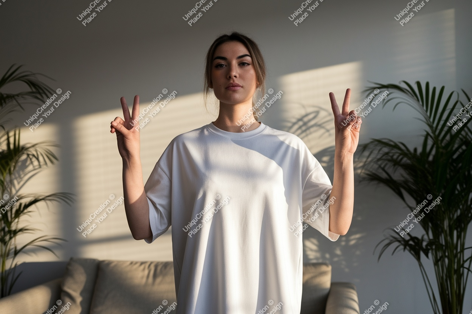 Fashion Shirt Casual Mockup Woman Peace White T Indoor Gesture
