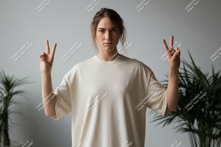 Sign T-shirt Mockup Peace Background Person Neutral Fingers Gesture Victory