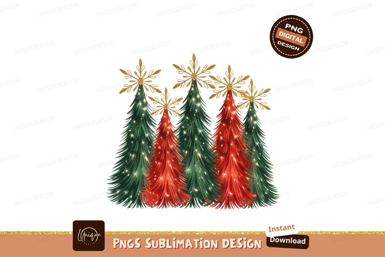 Festive Trees Snowflakes Lights Christmas holiday example image 1