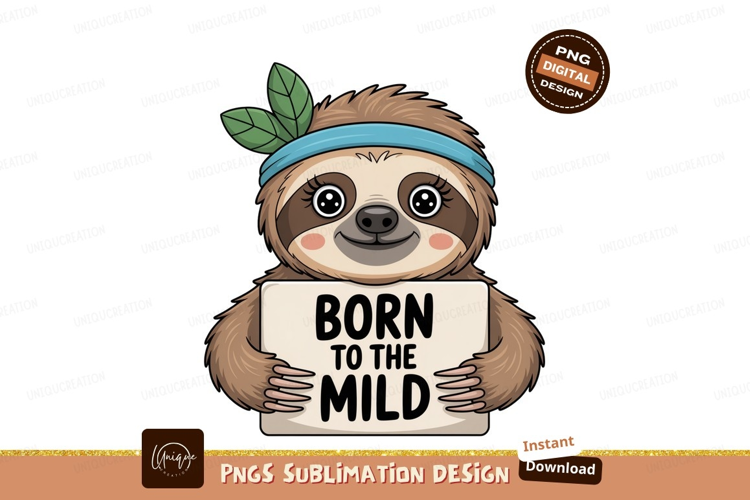 Similar Design Products to Cute sloth with headband and leaves holding sign animal