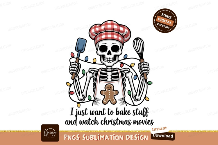 Skeleton baker with gingerbread apron and whisk chef example image 1