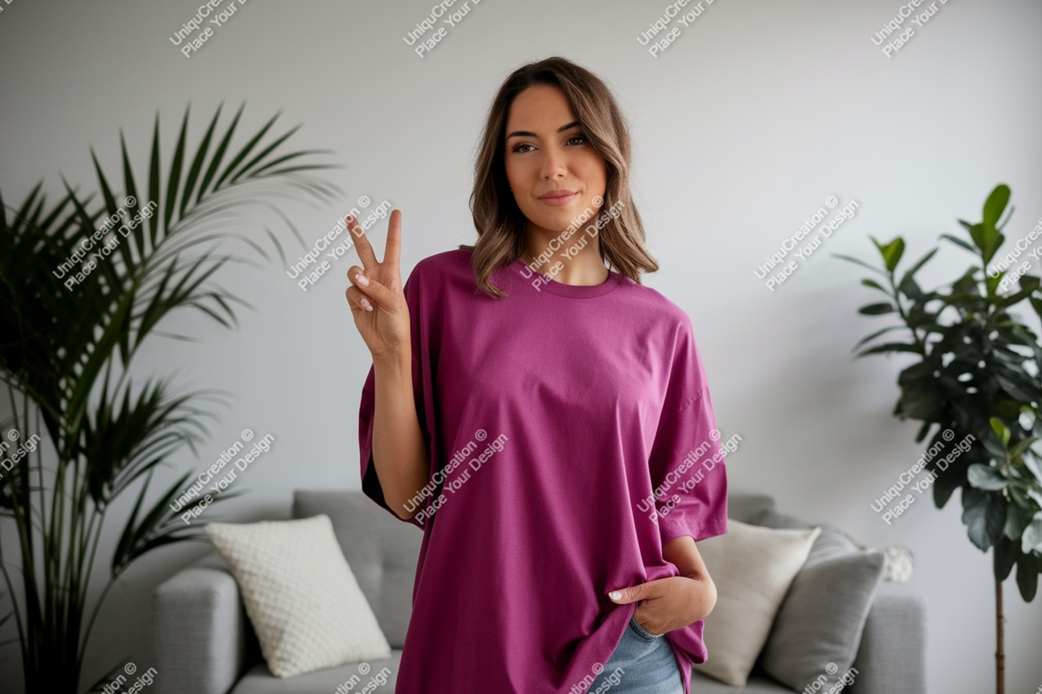 Modern Sign T-shirt Casual Woman Peace Purple Living Indoor Room