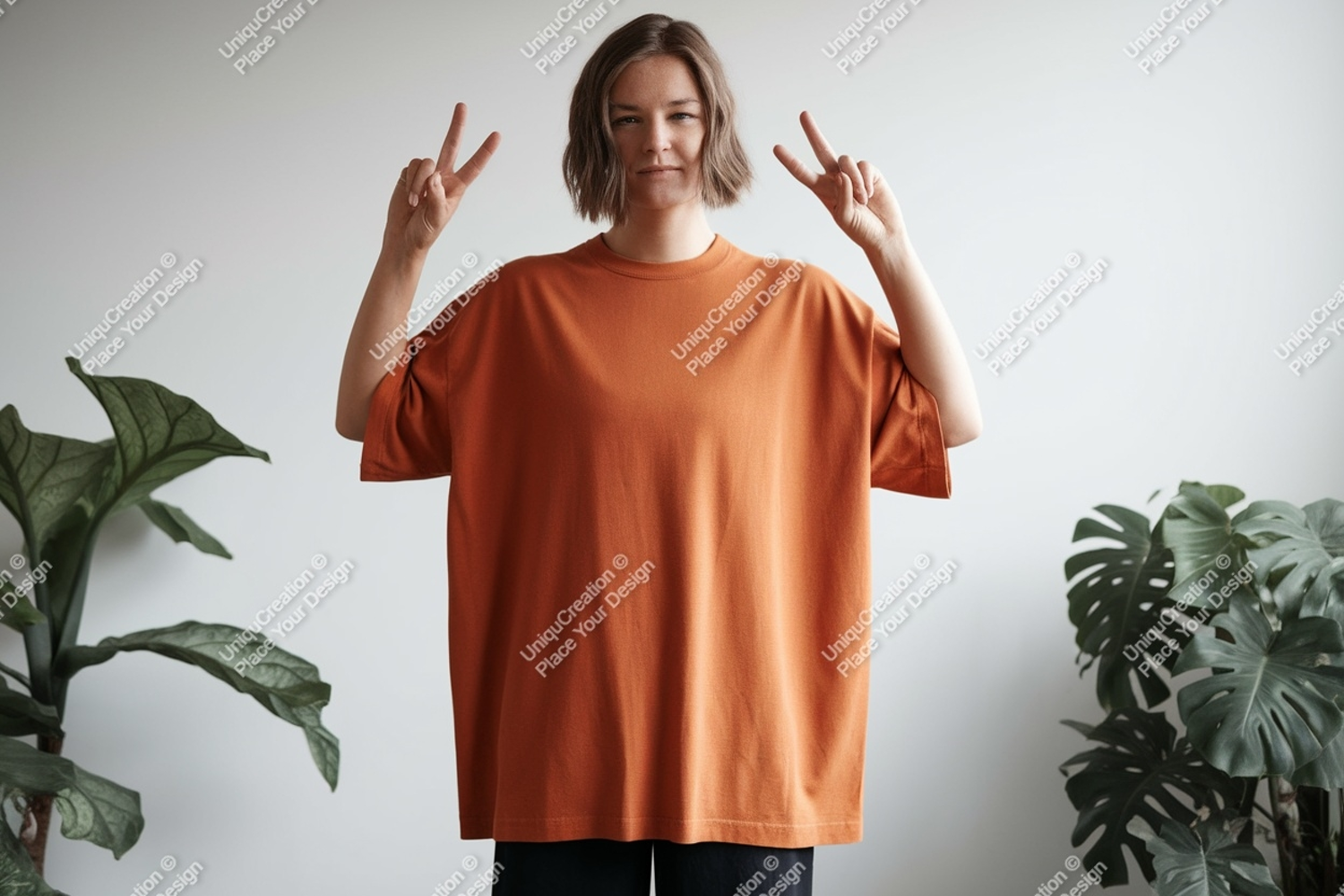 Shirt Casual Green Mockup Woman Signs Peace Orange Plants Indoor