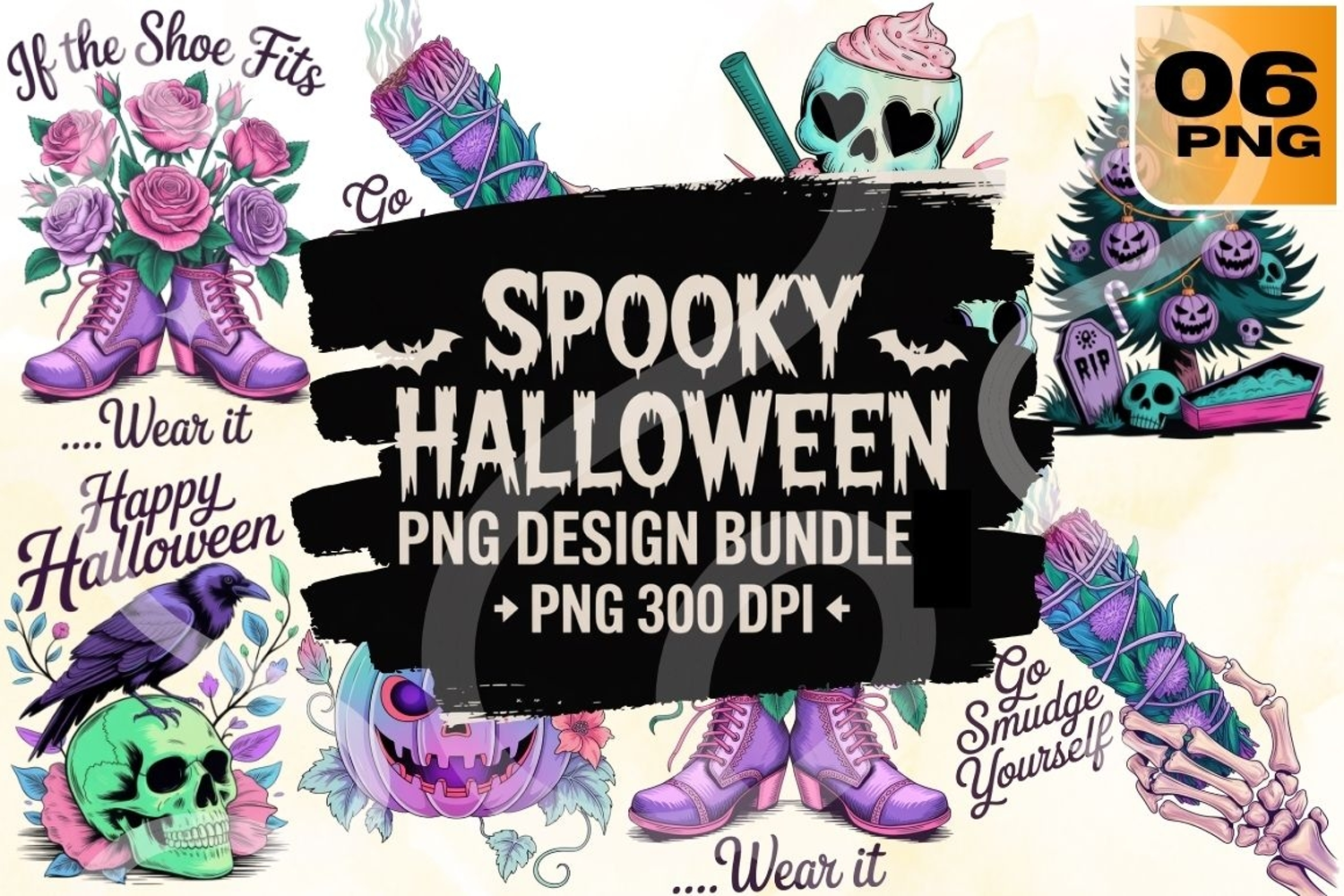 This Spooky Halloween PNG Design Bundle brings together six stunning, high-quality Halloween-themed designs, perfect for all your Halloween crafting, t-shirt printing, and digital design projects. Each design is created with vibrant colors and intricate details, offering a spooky yet stylish touch to your Halloween creations.