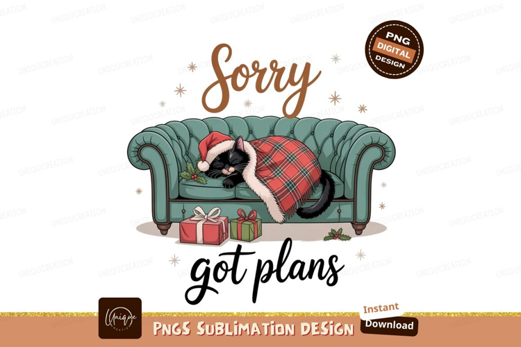 Similar Design Products to Black cat sleeping on couch wearing Santa hat image