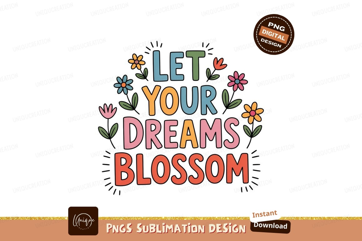 Let Your Dreams Blossom flowers lettering