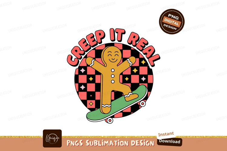 Gingerbread man skateboarding with text creep