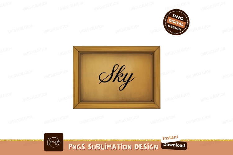Ornate framed parchment with cursive sky inscription