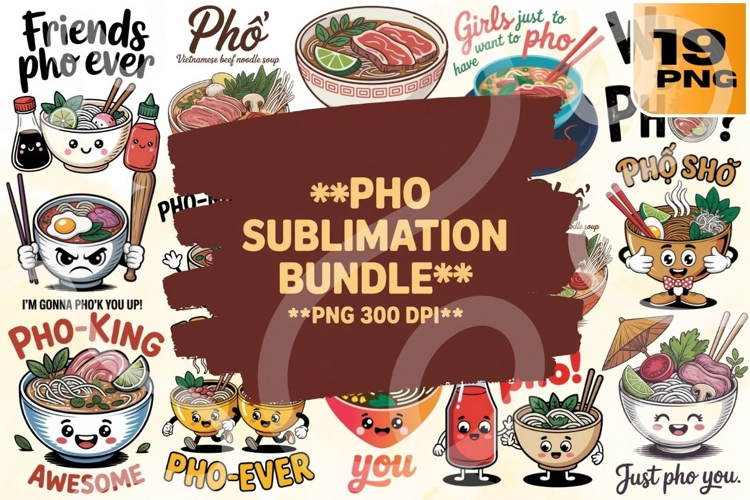 Featuring cartoon-style pho bowls, condiments, and noodle buddies with phrases like “Friends Pho Ever,” “Pho-King Awesome,” and “I’m Gonna Phởck You Up,” this bundle is ideal for Vietnamese food lovers, restaurant owners, and creators who love pun-packed designs.