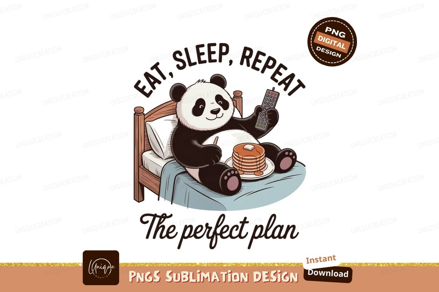 Similar Design Products to Panda eating pancakes in bed with remote image