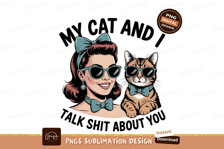 Woman and cat wearing sunglasses and bowties retro example image 1