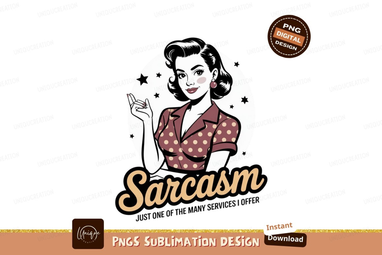 Retro woman with polka dot shirt and sarcasm text dots example image 1