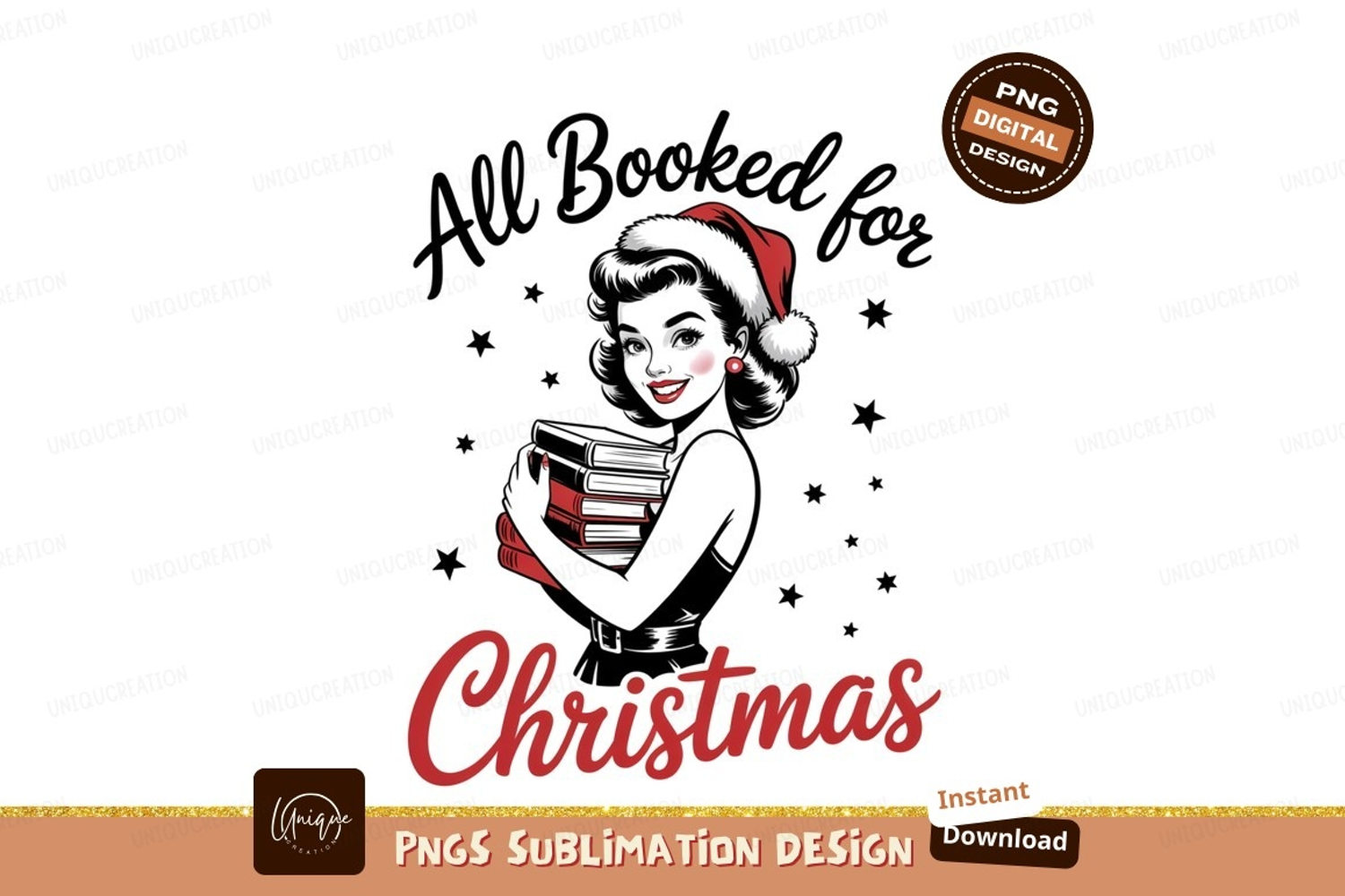 Festive book lover with santa hat Christmas books example image 1