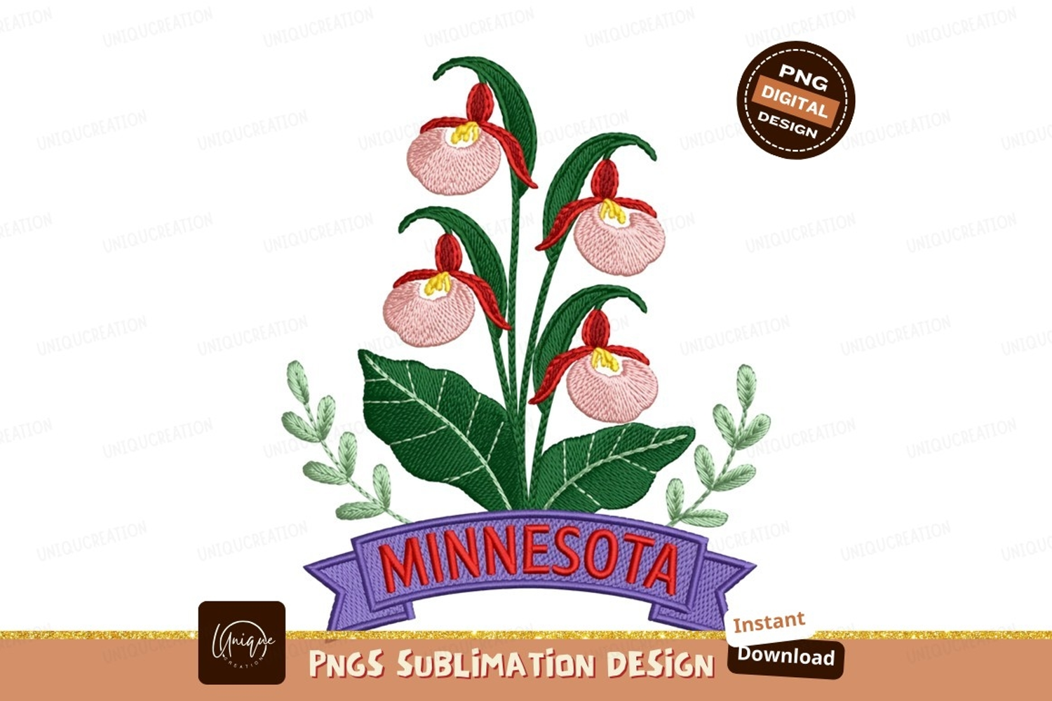 Pink Lady Slipper Flowers With Minnesota Banner image example image 1