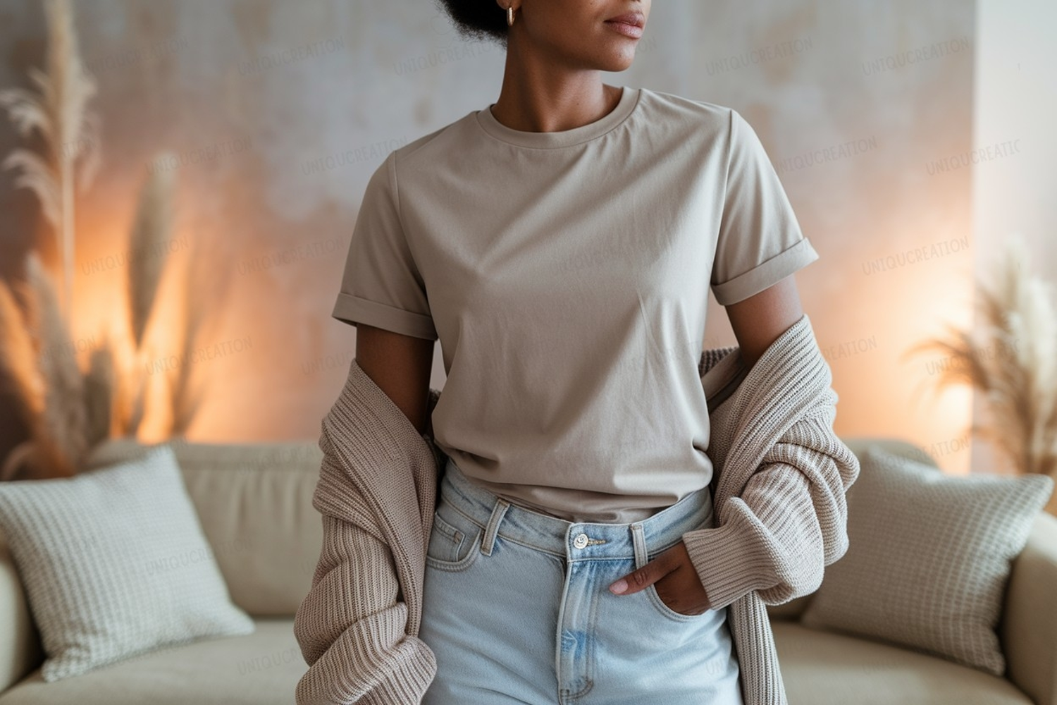 Similar Design Products to Woman wearing neutral t shirt and jeans image