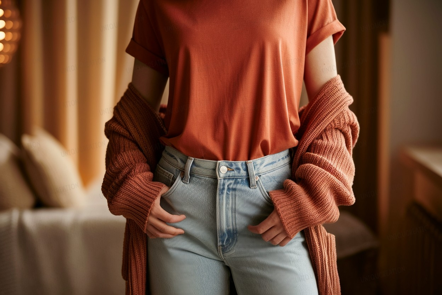 woman, man, female, male, person, fashion, clothing, apparel, casual, style, outfit, modern, chic, elegant, trendy, aesthetic, cozy, comfortable, soft, textured, knitwear, sweater, cardigan, knit, layered, cotton, fabric, stylish, everyday, relaxed, lifestyle, indoor, home, natural, light, shadows, studio, portrait, mockup, display, product, presentation, garment, simple, clean, neutral, background, upper body, torso, model, photo, image, picture, aesthetic, interior, decor, couch, pillows, vase, reeds, room