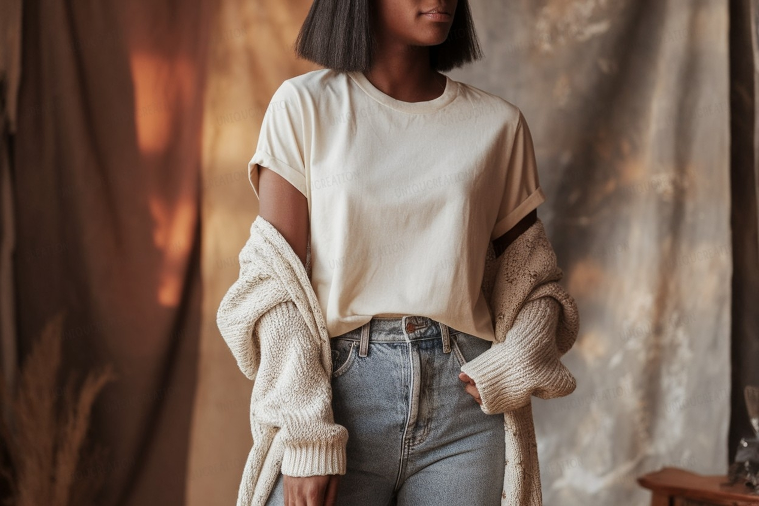 Similar Design Products to Cream tee and knit cardigan mockup woman
