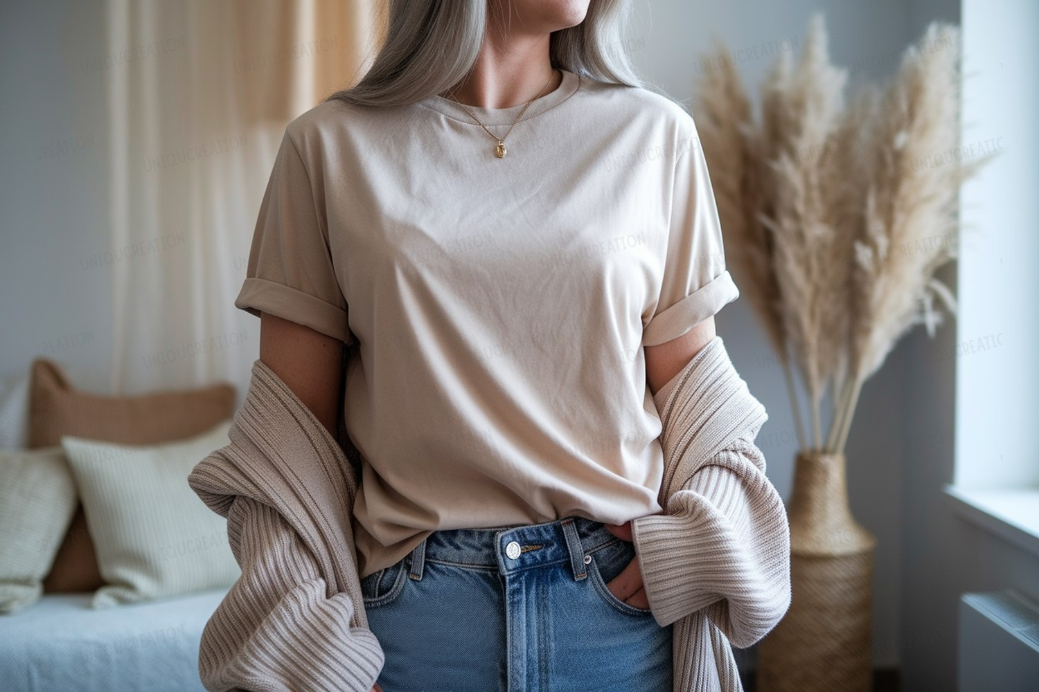 Similar Design Products to Beige t shirt mockup with cardigan image