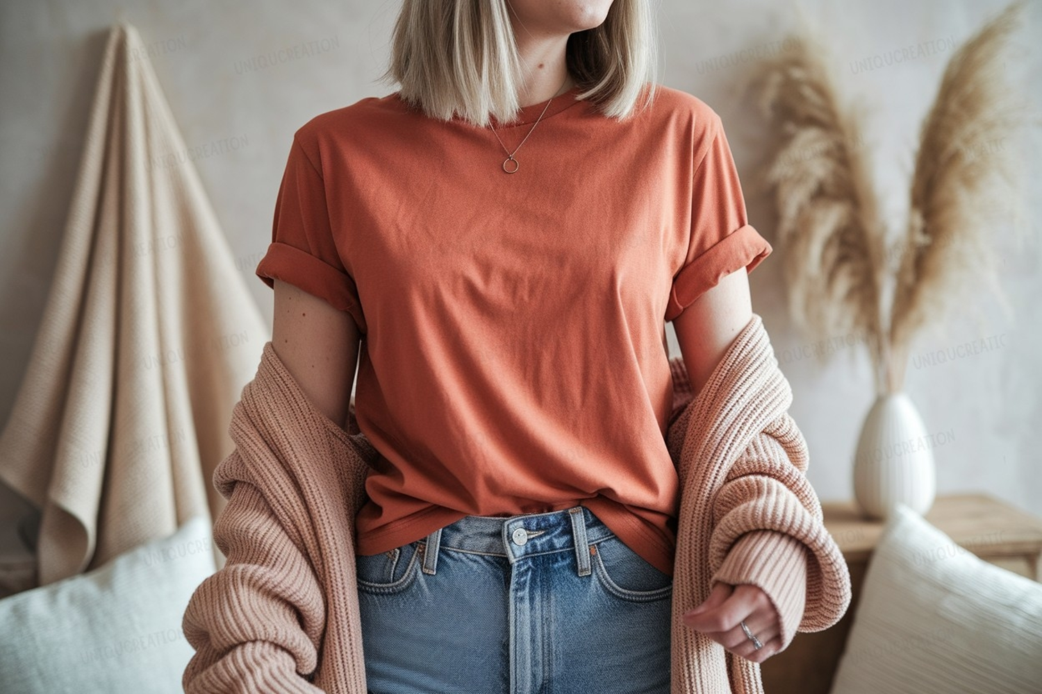 Fashion Shirt Clothing Casual Mockup Apparel Woman T Outfit Terracotta