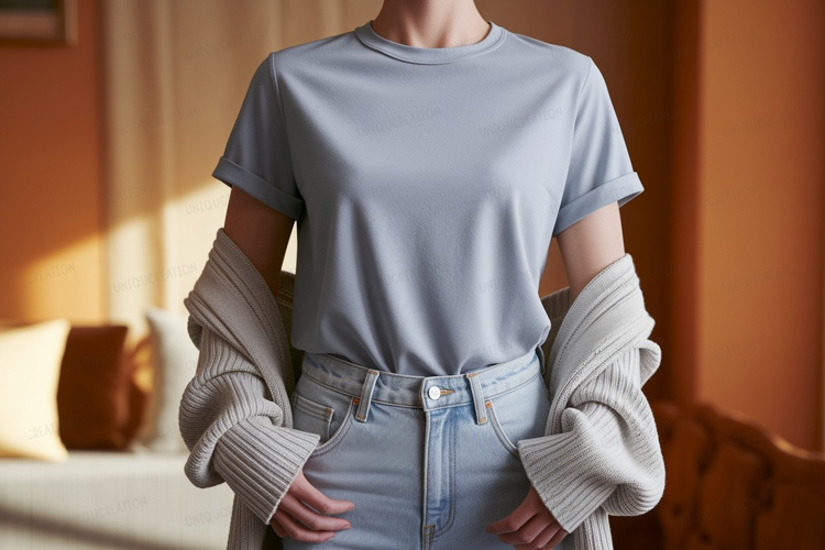 Light blue t shirt and jeans mockup denim