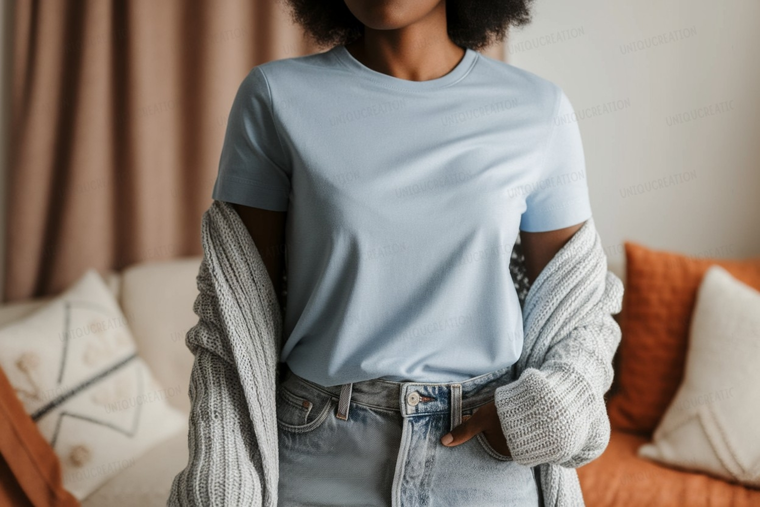 Fashion T-shirt Clothing Casual Mockup Apparel Woman Blue Grey Cardigan