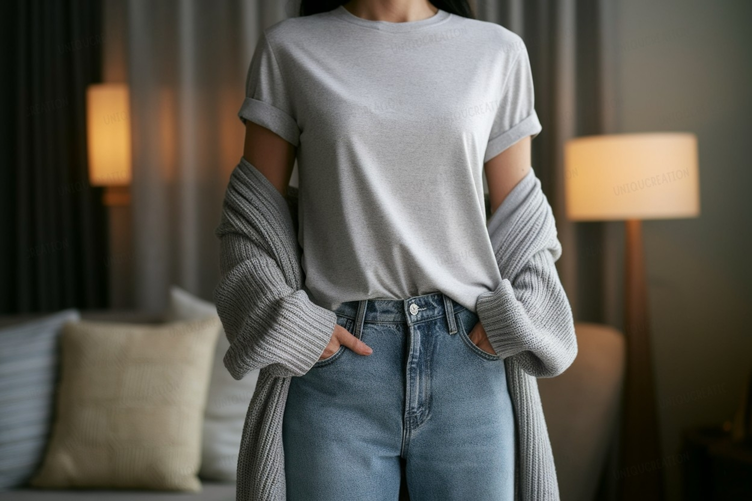 Similar Design Products to Grey t shirt and cardigan mockup tshirt jeans